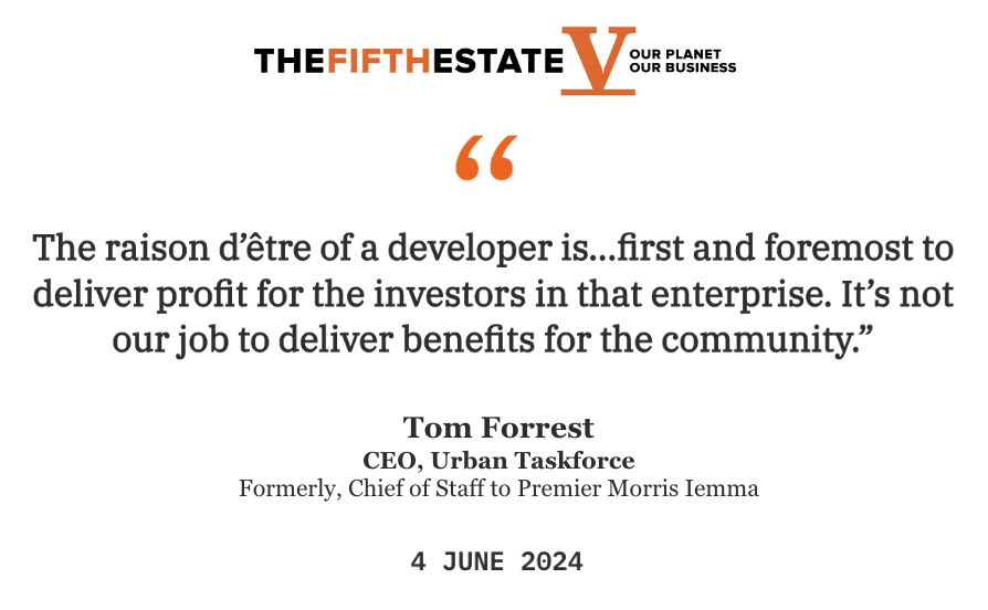 It has been running a media campaign calling concerned councils NIMBYs. But the truth is, Urban Taskforce and other developer advocacy groups don’t care about community. For them it’s all about profit. They said so themselves.