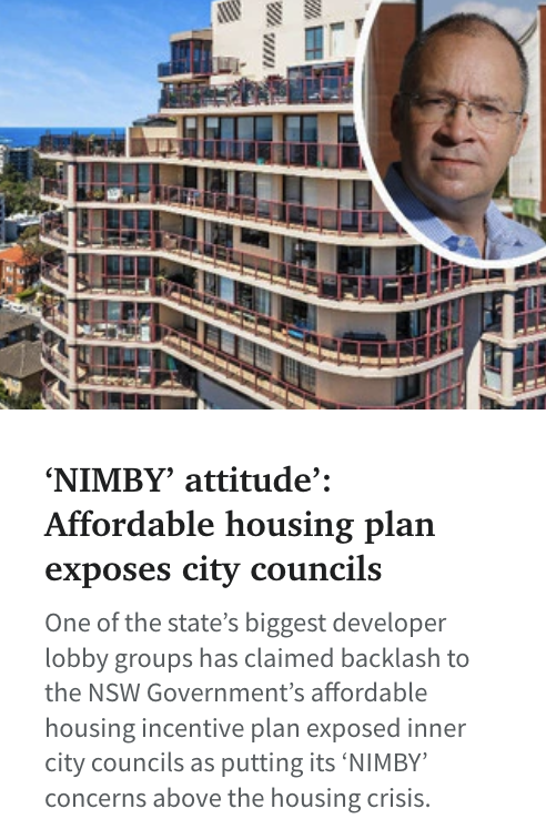 Urban Taskforce claims this is all about affordability and anyone against it is a NIMBY